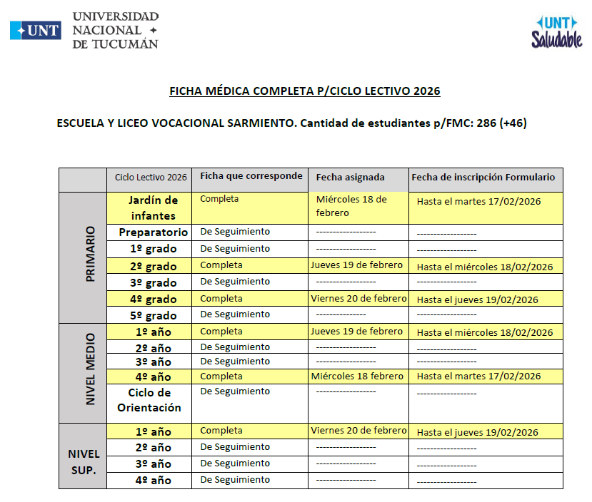- 2º grado (Nivel Primario): podrán completar la ficha el viernes 20 o el jueves 26 de febrero (únicamente en esas dos fechas).