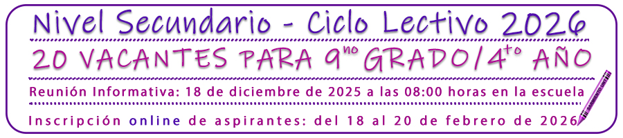 En el 4º año/9no grado del ciclo orientado 2026, el número de vacantes será de 20 asientos.